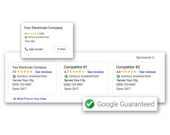 With Google's new Local Service Ads you can receive leads directly from potential customers through phone calls and messages. The best part about Local Service ads is that only you pay for the lead, not for a click. After passing the screening process, you will receive the trusted Google Guaranteed badge on your profile. You can manage your leads, track bookings, and reply to messages from customers through the convenient app provided by Google.